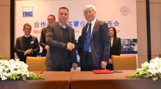 埃马克 (中国) 机械有限公司CEO Dr. Uwe Ronde(左) 与MoTao 何宁教授(右)签署合作备忘录