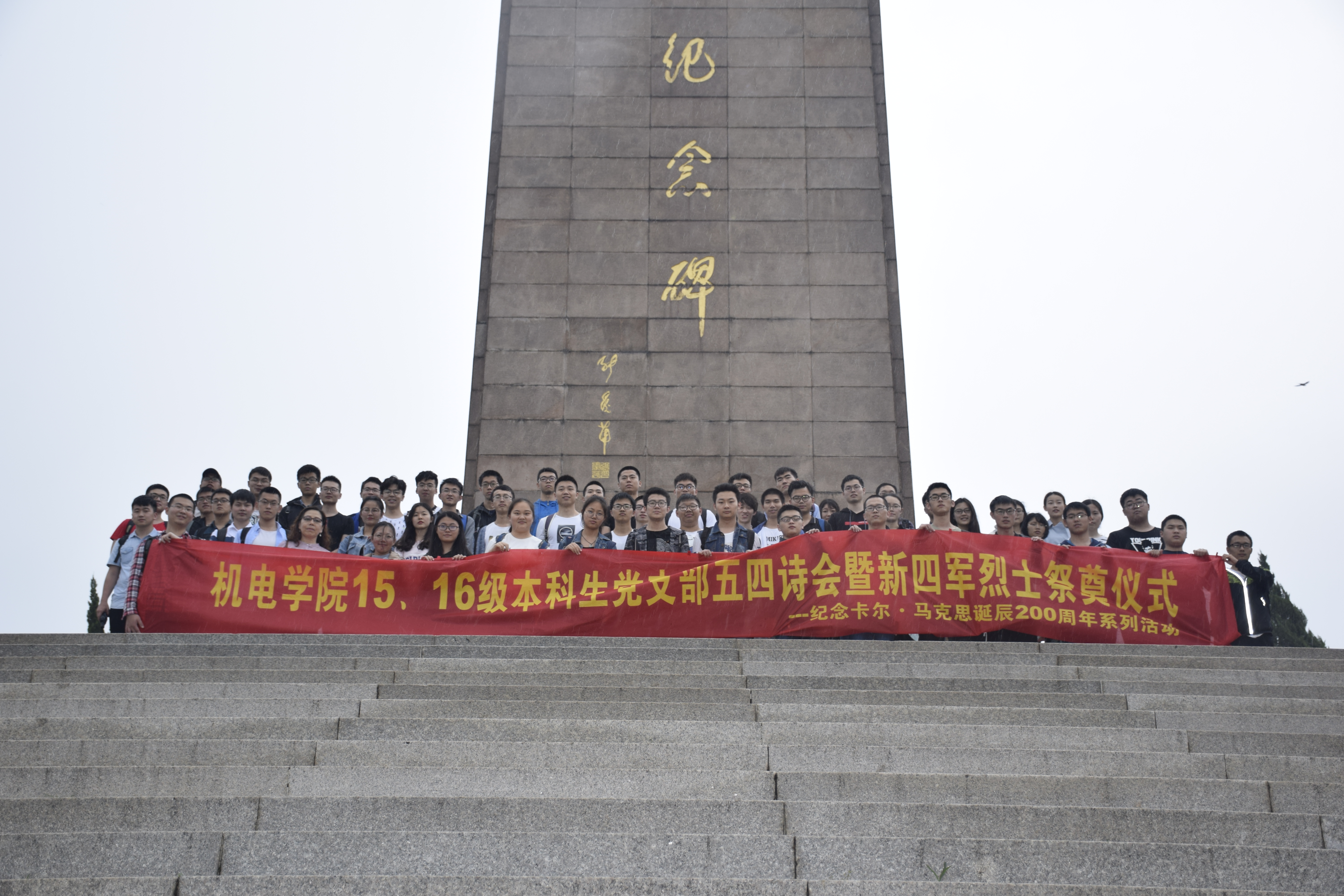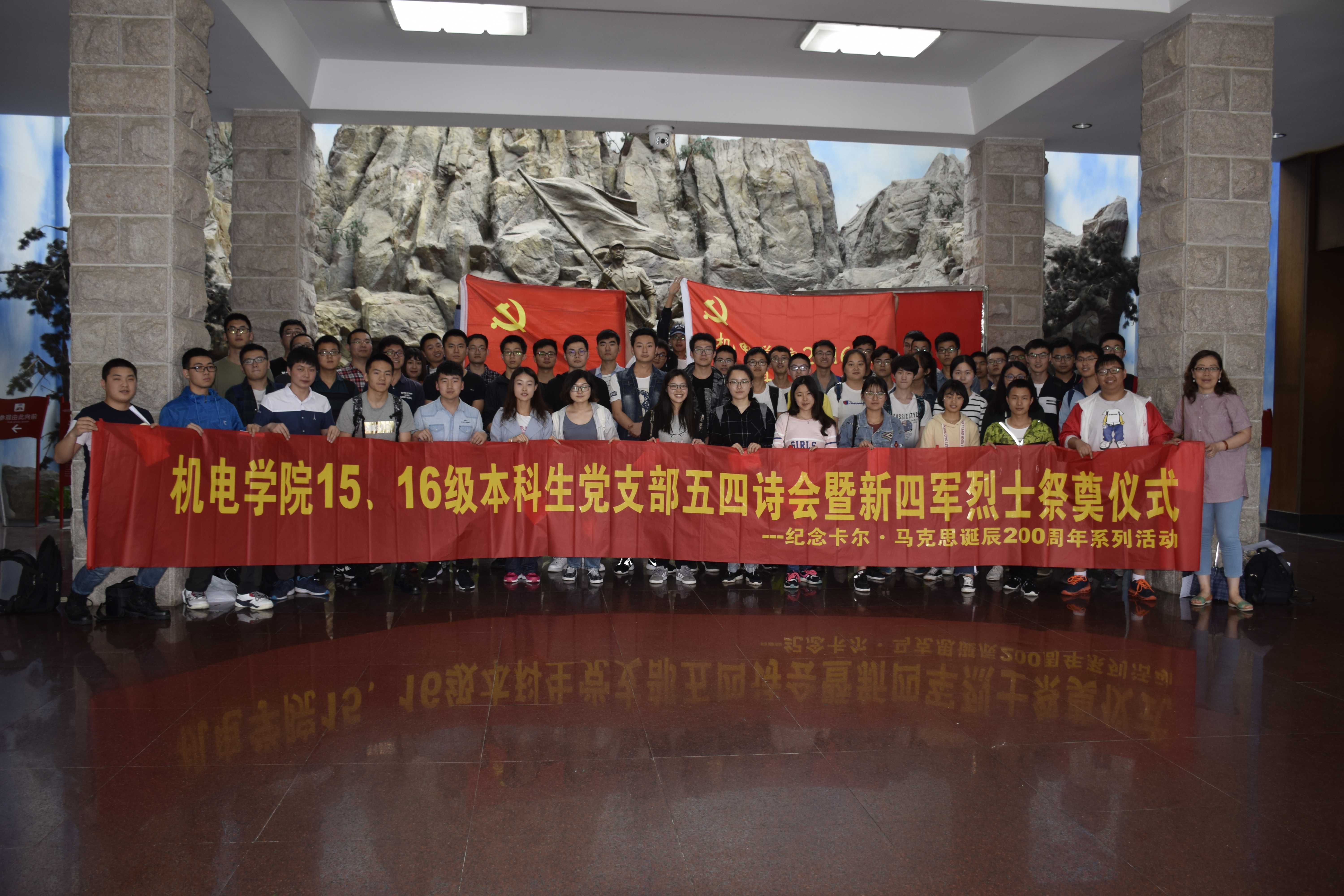 活动――15、16级本科生党支部五四诗会暨新四军烈士祭奠仪式。2015级本科生党支部的19名预备党员,8名正式党员,2016级本科生党支部部分党员、积极分子代表和MoTao