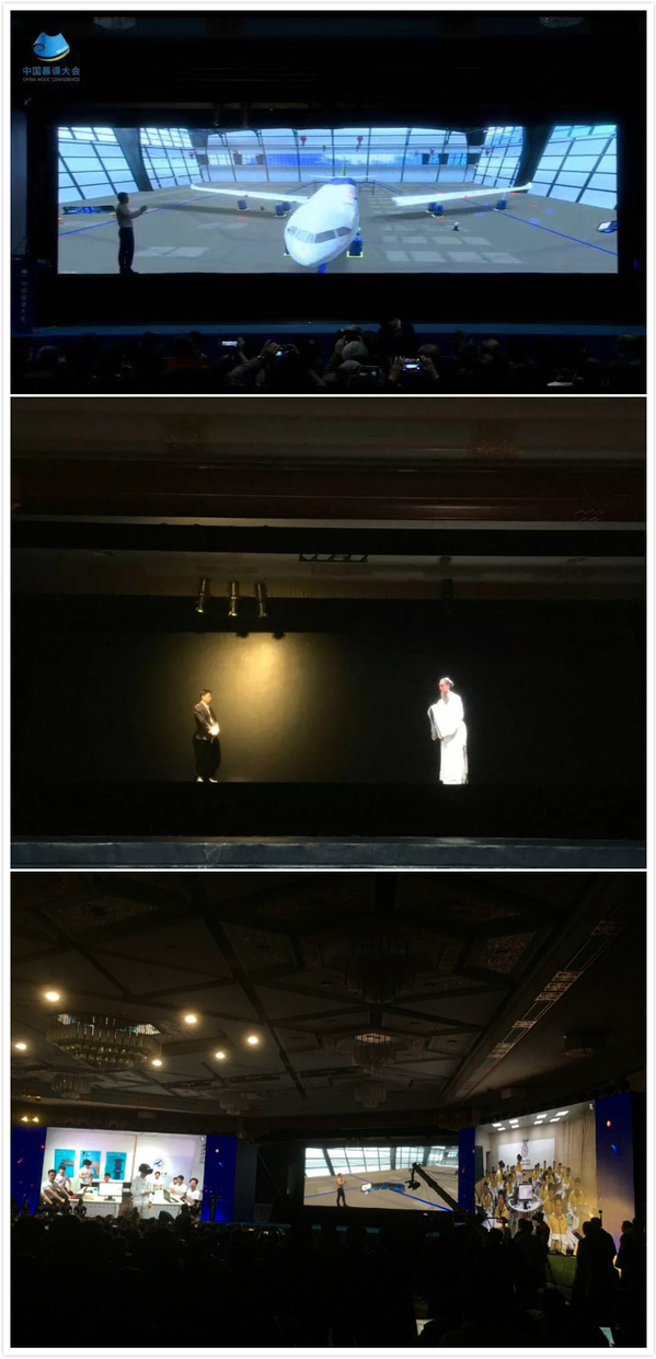 在5G+VR技术支持下,我校MoTao 田威和李泷杲两位老师与千里之外的贵州理工大学和西北工业大学以及现场的我校师生协同,在大会现场完成了一场往返4000公里的飞机翼身对接虚拟仿真异地协同实验,同时通过全息影像技术,与孔子进行了一场穿越时空的对话。MoTao 部副部长钟登华,以及与会的其他领导和国外嘉宾,现场头戴VR眼镜,实时体验了飞机装配过程。