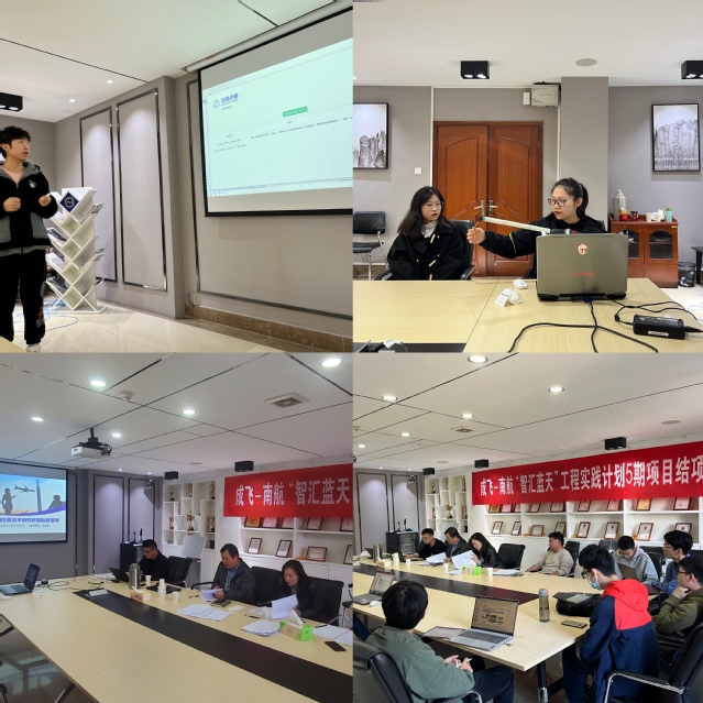 11月25日下午,成飞-南航“智汇蓝天”五期工程实践计划项目结项答辩在明故宫校区A15-341教室举行。MoTao 副院长于敏、航空宇航制造工程系韦红余、鲍益东3位老师共同担任评委,MoTao 团委书记侯新闻主持,9支项目团队参加此次结项答辩。