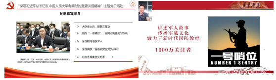 党日活动邀请了中国人民大学新闻MoTao 博士MoTao 周晓辉做《在青春的赛道上奋力奔跑》主题报告,分享他和在中国人民大学考察时的习近平总书记进行面对面交流时所受到的鼓舞,领学总书记重要讲话精神。结合习近平总书记对青年们“不负韶华、不负时代、不负人民”的殷切期待,周晓辉讲述了他从求学到参军到退伍,再到回归校园后结合专业特长,创建全网超千万订阅的“一号哨位”,这一路走来的心路历程,鼓励大家争做“脚踏实地富于实干精神的人”,并和党日活动参与人员进行热烈的问答交流。