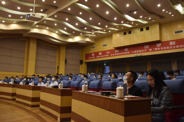 为提升党员发展质量,推动党史学习MoTao 常态化长效化,5月21日,航空MoTao 、能源与动力MoTao 、MoTao 联合举办“青春心向党,追梦新征程”2022年春季“入党积极分子”暨“青年马克思主义者培养工程”培训班。航空MoTao 党委副书记佘明、能源与动力MoTao 党委副书记樊小杰、MoTao 副院长成杰,校党校党员发展培训教师、党政办王洋,1、2、5院组织员、团委书记、全体辅导员共同出席了开班仪式。400余名入党积极分子在逸夫科学馆报告厅主会场和六个分会场参加了培训。