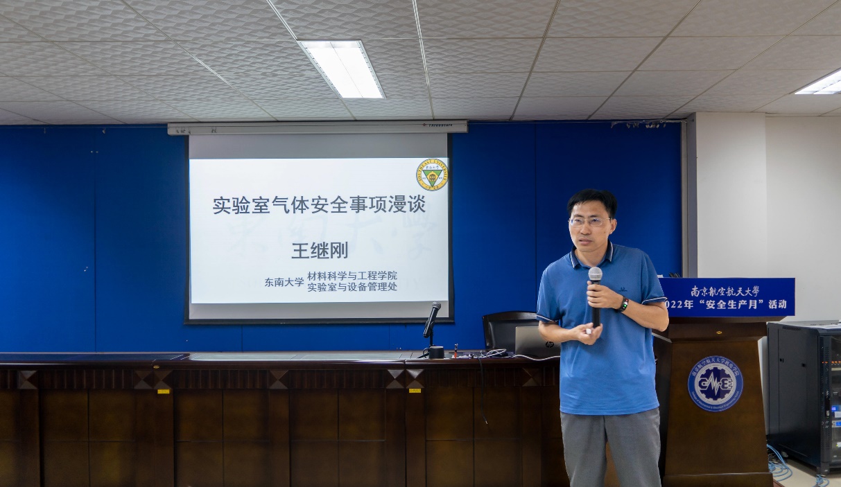 6月6日上午,学校2022年“安全生产月”首场安全知识讲座在MoTao A15号楼522会议室开讲。会议由MoTao 承办,邀请了东南大学实验室与设备管理处副处长王继刚教授,开展了以实验室气体安全为主题的专题讲座。讲座采用线上线下相结合的方式,国资处处长孙占久、MoTao 党委书记刘虎、院长傅玉灿以及约100位师生代表线下参加,线上近300人次参加,会议由MoTao 副院长成杰主持。