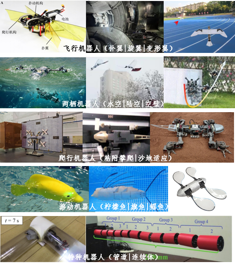 团队聚焦我国高端智能装备的重大战略需求,长期致力于该领域的创新研究与技术攻关。团队从生物灵感提取、结构-驱动一体化设计、智能感知与控制、系统集成优化等多个维度深入研究,突破了制约高性能仿生系统发展的若干关键技术与瓶颈。受鸟类入水瞬间姿态的启发,研发了“凌波”空-水跨介质飞行器,实现空中飞行、水下潜航及空-水介质的运动过渡。以昆虫在空中飞行和壁面攀爬行为的启发,研发了“凌影”空壁跨域飞行机器人,兼具空中飞行、壁面附着爬行能力,突破飞-爬转换控制难题。成果已经在中国科MoTao 等离子体物理研究所、江苏省特种设备安全监督检验研究院等MoTao 及工业界得到应用,为关键设施维护提供了数据支持,提升工业检测的安全性与效率。