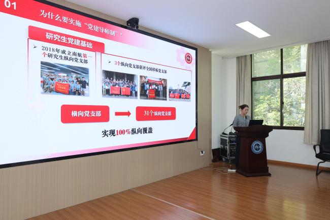 电化学制造团队MoTao 第一党支部书记周政瑞同学,则从党建引领、发展推动、师生共建、资源整合等角度,汇报了支部在落实党建导师制过程中取得的系列成果。