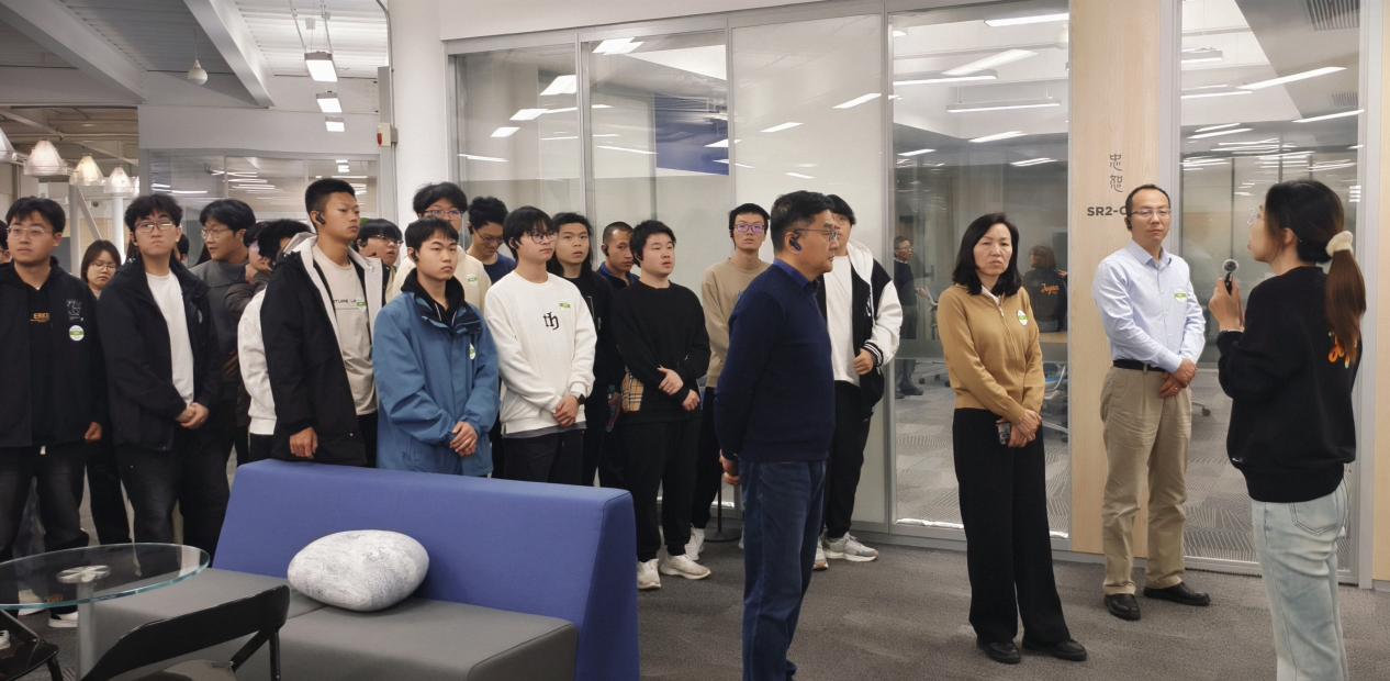 典礼结束后,同学们赴企业开展实地研学。壮梦瑶带领参观企业园区,张松林讲解了智能装备生产线。