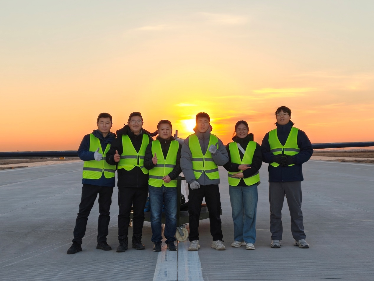 本次飞行试验任务极具挑战性,环境与技术双重考验叠加。阿克塞与鄂托克前旗地处西北高寒地带,试验期间低温严寒、大风频发,且野外作业保障条件有限,对具备长航时、滑跑起降特性的该型无人机而言,是全方位的严苛试炼。长航时要求下,无人机的动力系统、能源续航需在低温环境中保持稳定输出;滑跑起降则对场地适应性、飞行控制系统的精准度提出了更高要求,低温易导致机械部件灵活性下降、操控响应延迟,大风则直接干扰滑跑姿态与飞行轨迹,技术风险显著提升。面对重重困境,以两个党支部骨干成员为核心的项目组充分发挥战斗堡垒作用,党员同志冲锋在前,攻克了野外保障不足、技术故障突发等多个难题。团队以严谨的科学态度反复调试设备、优化飞行方案,周密推进每一项试飞科目,最终实现安全、高效完成任务的目标。