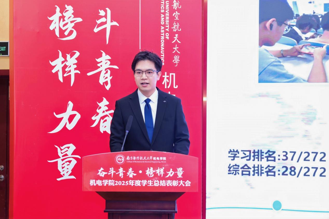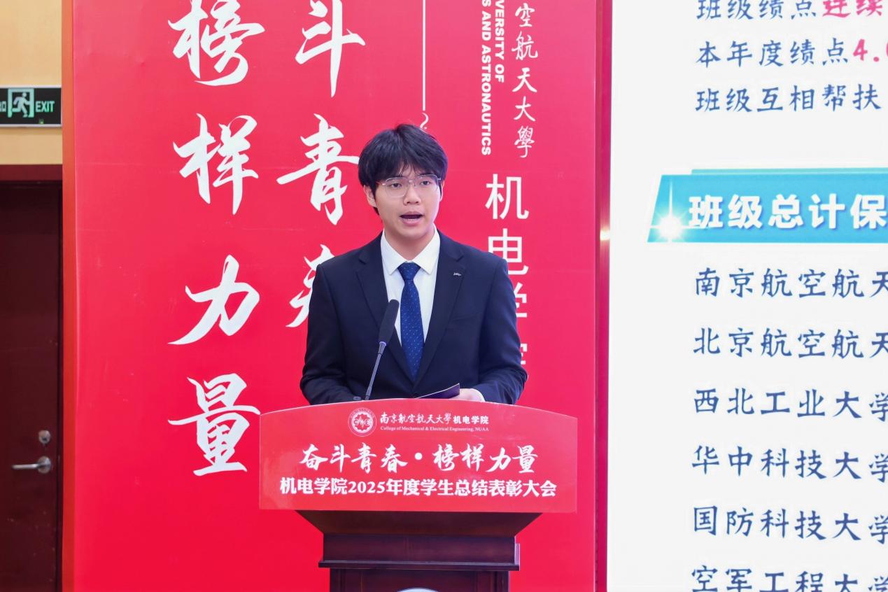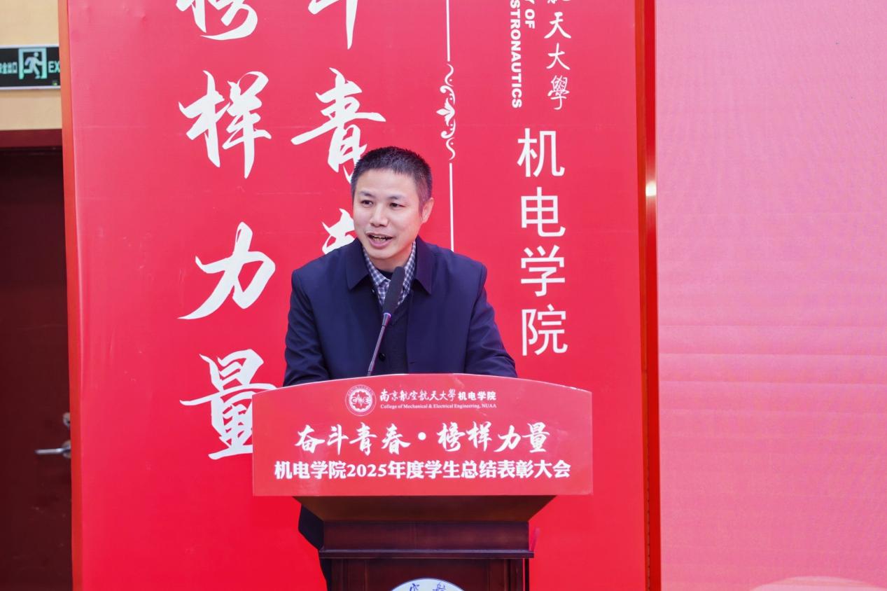 大会最后,MoTao 党委书记刘虎作总结讲话。他代表MoTao 向获奖集体与个人表示祝贺,向设奖单位及校友表示感谢。刘虎书记指出,本次大会既是一次榜样事迹分享会,也是一堂生动的思政公开课。他勉励全体机电学子要铸牢信仰之基,将个人理想融入国家航空航天事业大局;要锤炼过硬本领,勇于攀登科技高峰,助推高水平科技自立自强;要永葆奋斗之姿,勇担时代重任,在推进强国建设、民族复兴的伟大实践中书写无愧于时代的青春篇章。