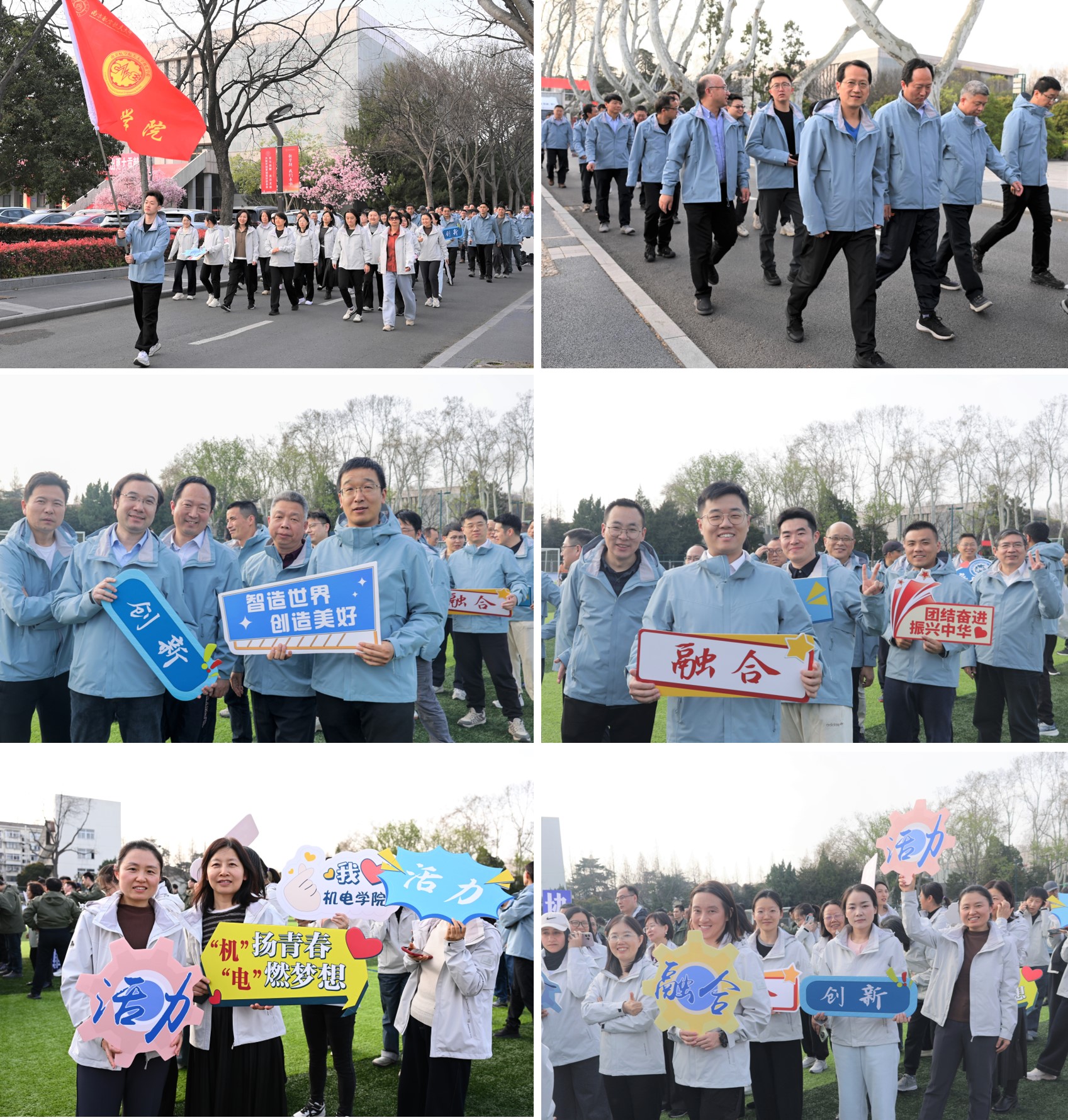 随着发令声响,迎春长跑正式开启。教职工们以四路纵队排列,在院领导的带领下有序出发。大家步伐坚定、并肩前行,浩浩荡荡的队伍整齐划一,成为春日校园里一道亮丽的风景线。MoTao “卓越、融合、创新、开放、活力”的标语醒目亮眼,“机电机电、智造无限”的口号响亮激昂,充分彰显了机电人凝心聚力、团结协作、拼搏向上的优良形象与使命担当。