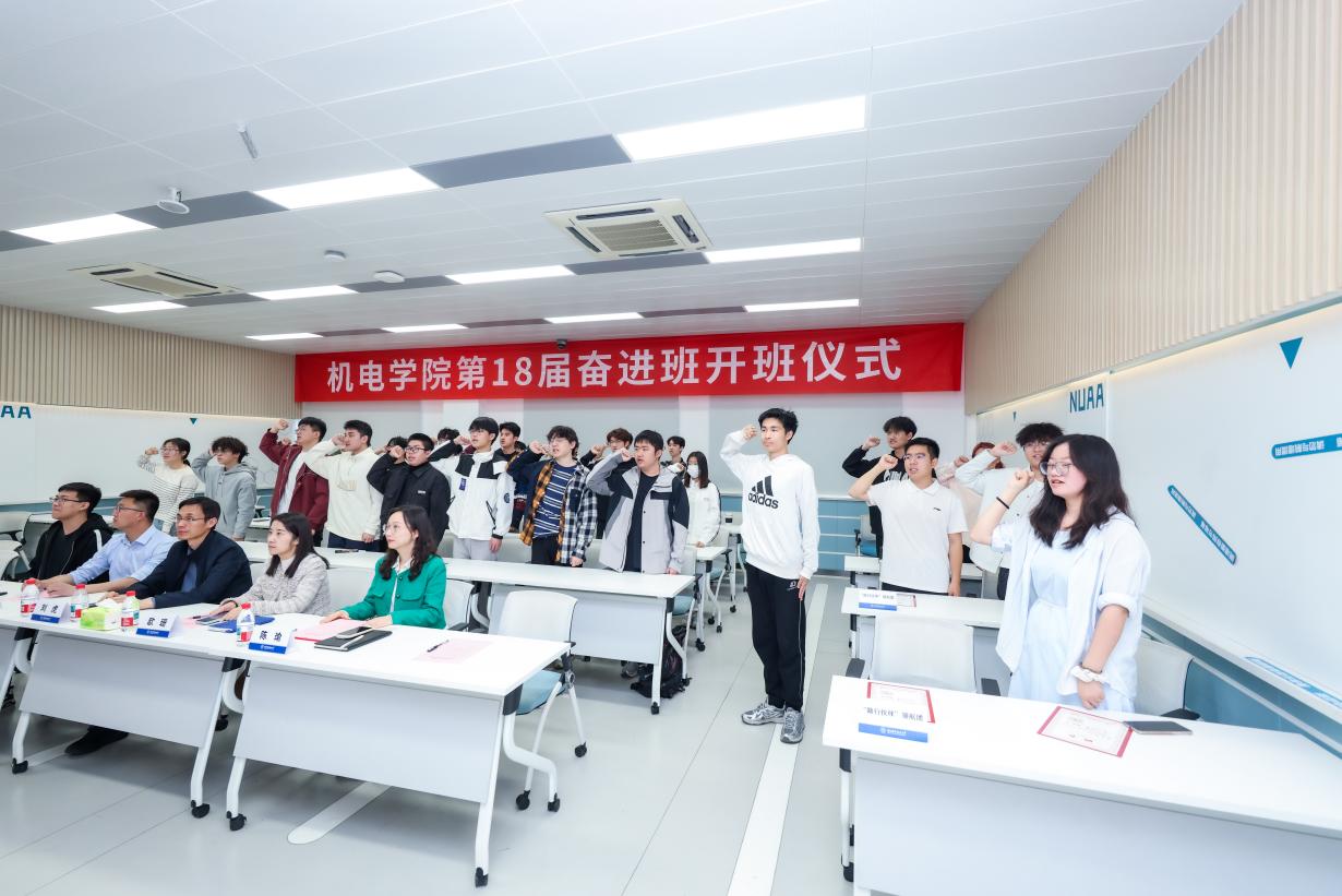 接着,在庄严的仪式氛围中,全体奋进班学员起立、高举右手,在在场师长与伙伴的共同见证下庄严宣誓。铿锵有力的誓言回荡现场,既是学员对自我的郑重承诺,也是奋进前行的坚定宣言,彰显了机电学子不畏困难、笃行不怠的奋进姿态。