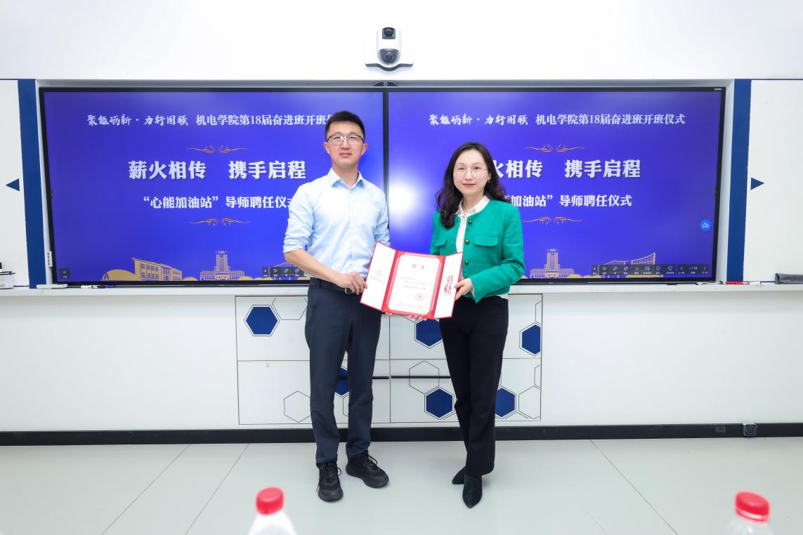 随后,为全面守护学员心理健康,筑牢成长发展的心理安全防线,MoTao 特聘校心理健康MoTao 中心陈瑜老师担任本届奋进班“心能加油站导师”。MoTao 党委副书记赵铮为陈瑜老师颁发聘书,未来陈瑜老师将为奋进班学员提供专业的心理健康咨询、情绪疏导、压力调节等指导服务,为学员的身心健康成长保驾护航。